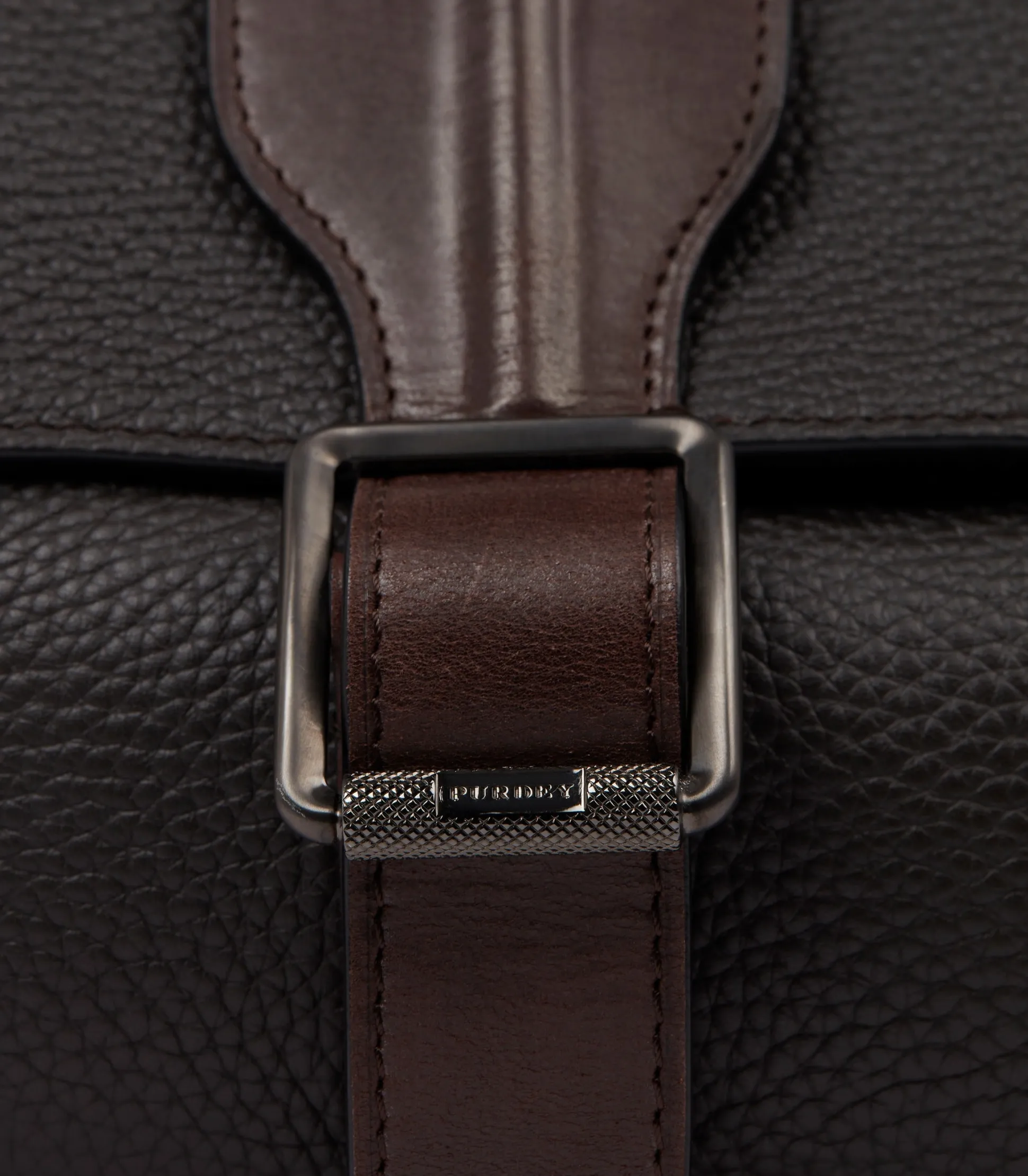 – Flap closure with bombe detailing on leather strap