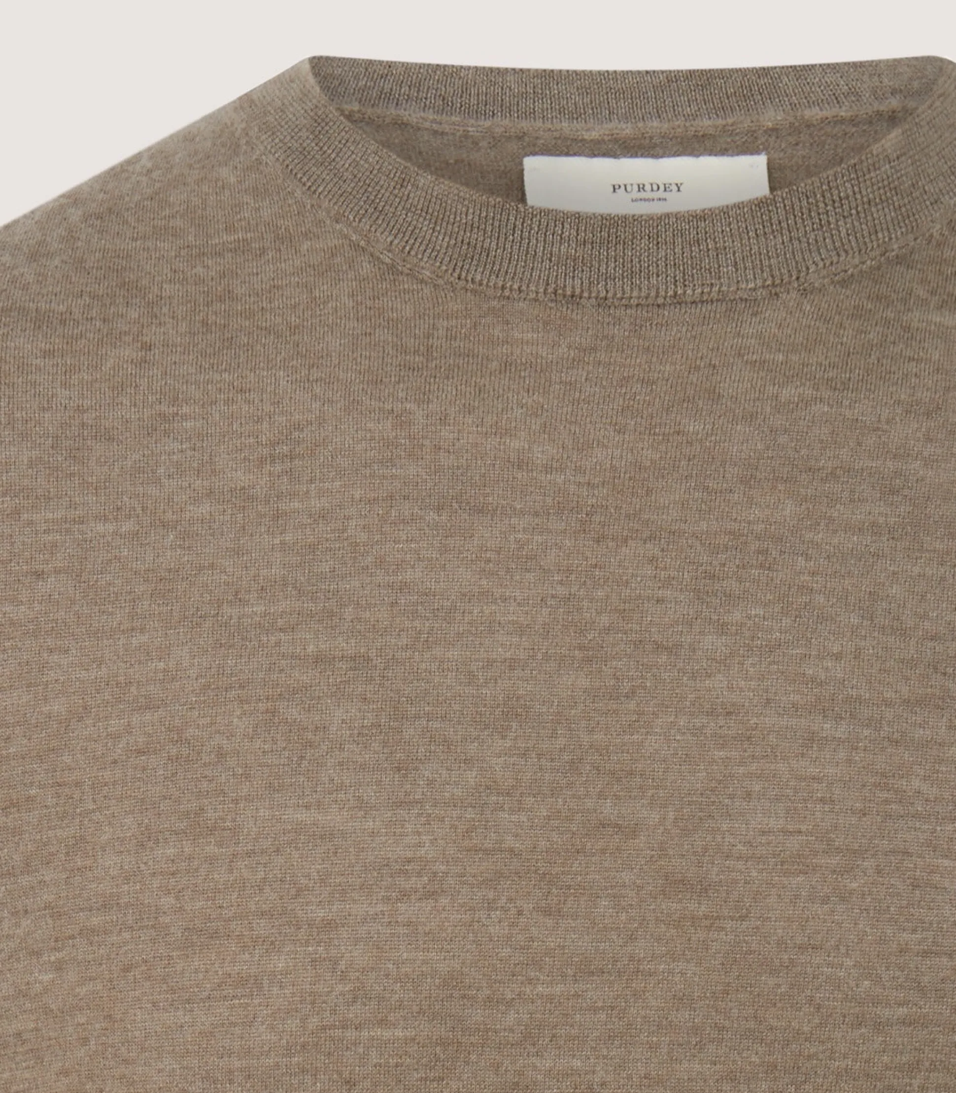 Purdey Men’s Cashmere Seamless Crew Neck in Taupe