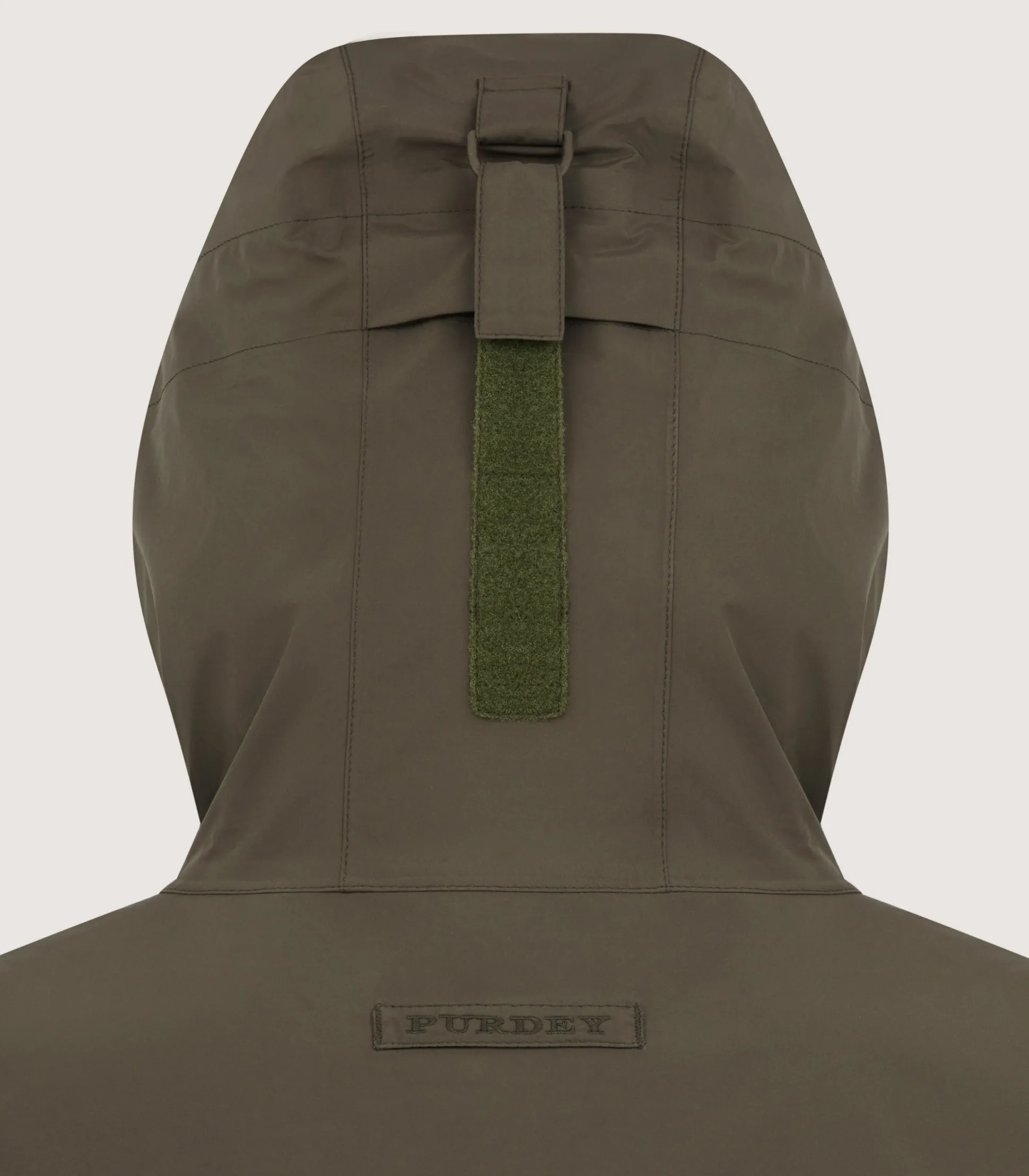 A sporting jacket that can be worn every day, this garment was made in Portugal from a lightweight waterproof fabric. A stylish Purdey wordmark is printed on the chest with embroidery on the back outer hanging loop. As a final detail, it has a carabiner clip for easy carrying.
