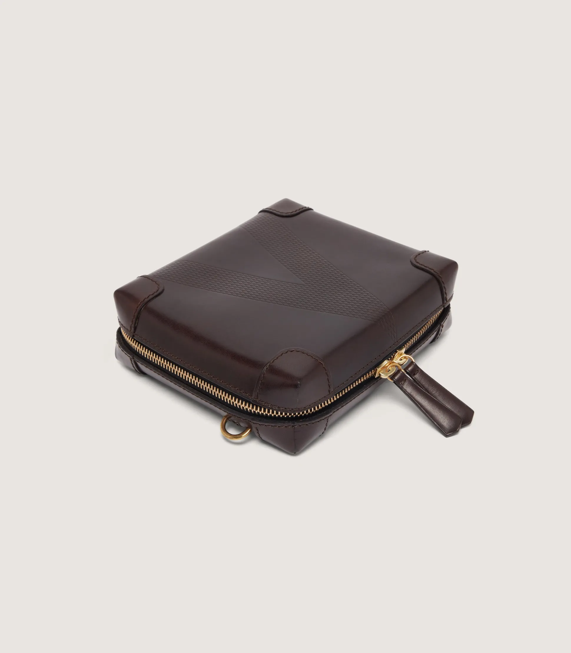 – Made from calf skin the case uses a more robust leather for the outer while the inner uses an Audley Red full grain lather