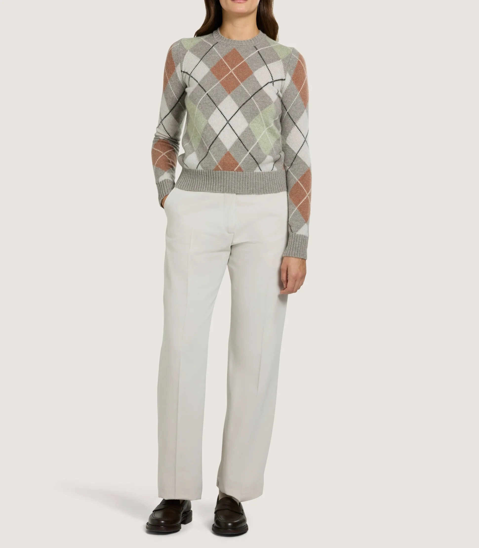 Women Purdey Women’s Cashmere Argyle Crew Neck Sweater in Flint