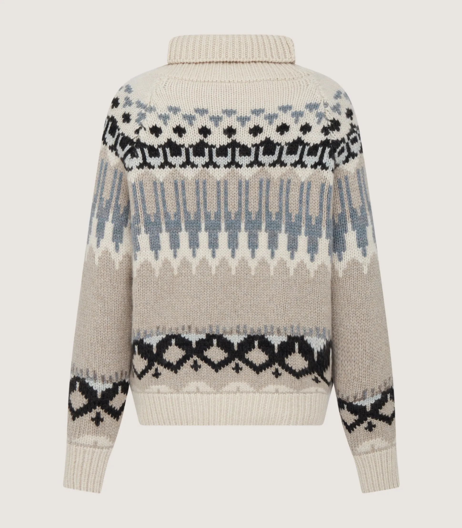 Knitted with British cashmere, this sweater’s construction was created through the hand intarsia technique — which produces intricate patterns and gives definition to the soft material. Its roomy fit provides the perfect level of comfort and can be layered.