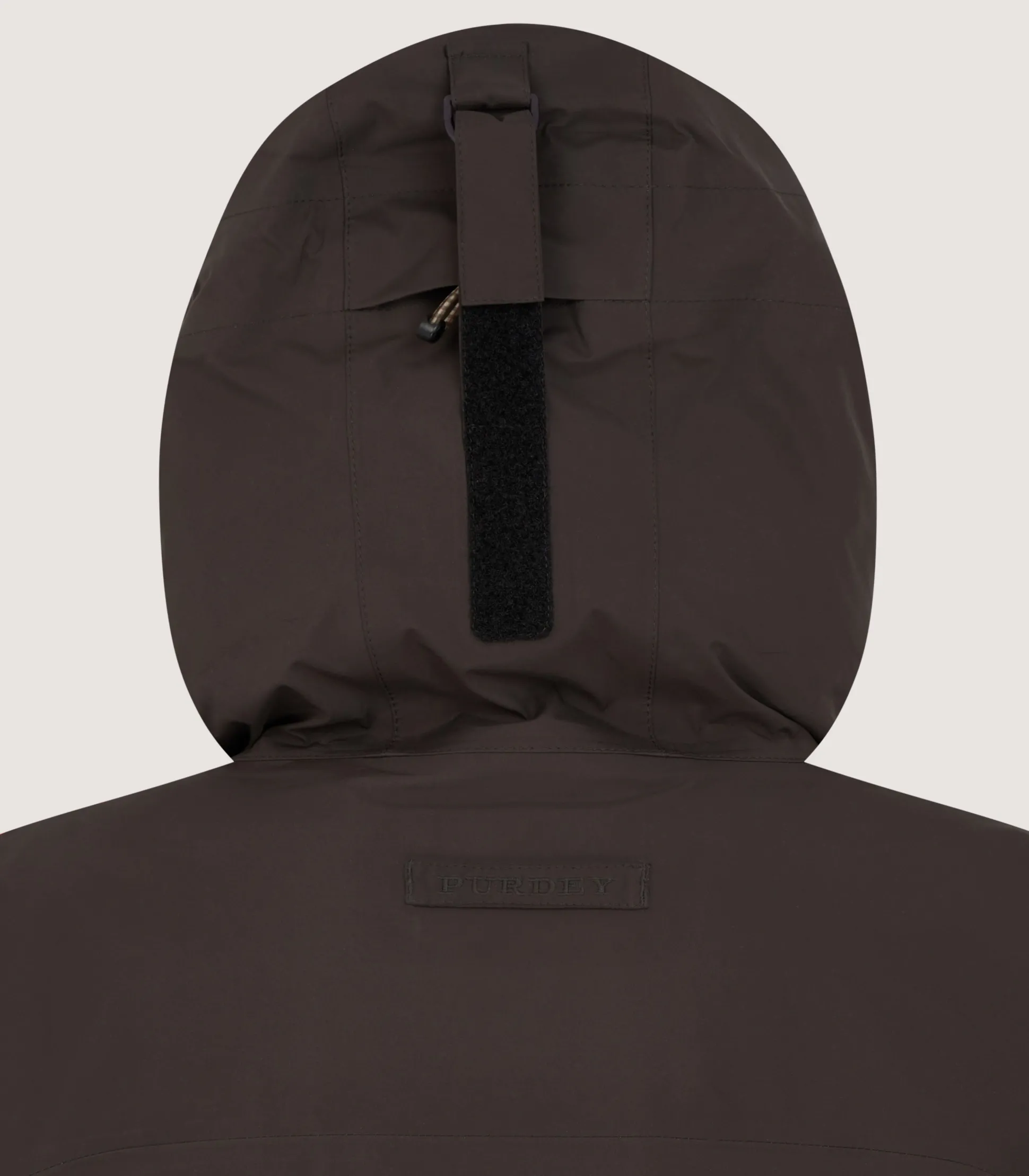A sporting jacket that can be worn every day, this garment was made in Portugal from a lightweight waterproof fabric. A stylish Purdey wordmark is printed on the chest with embroidery on the back outer hanging loop. As a final detail, it has a carabiner clip for easy carrying.