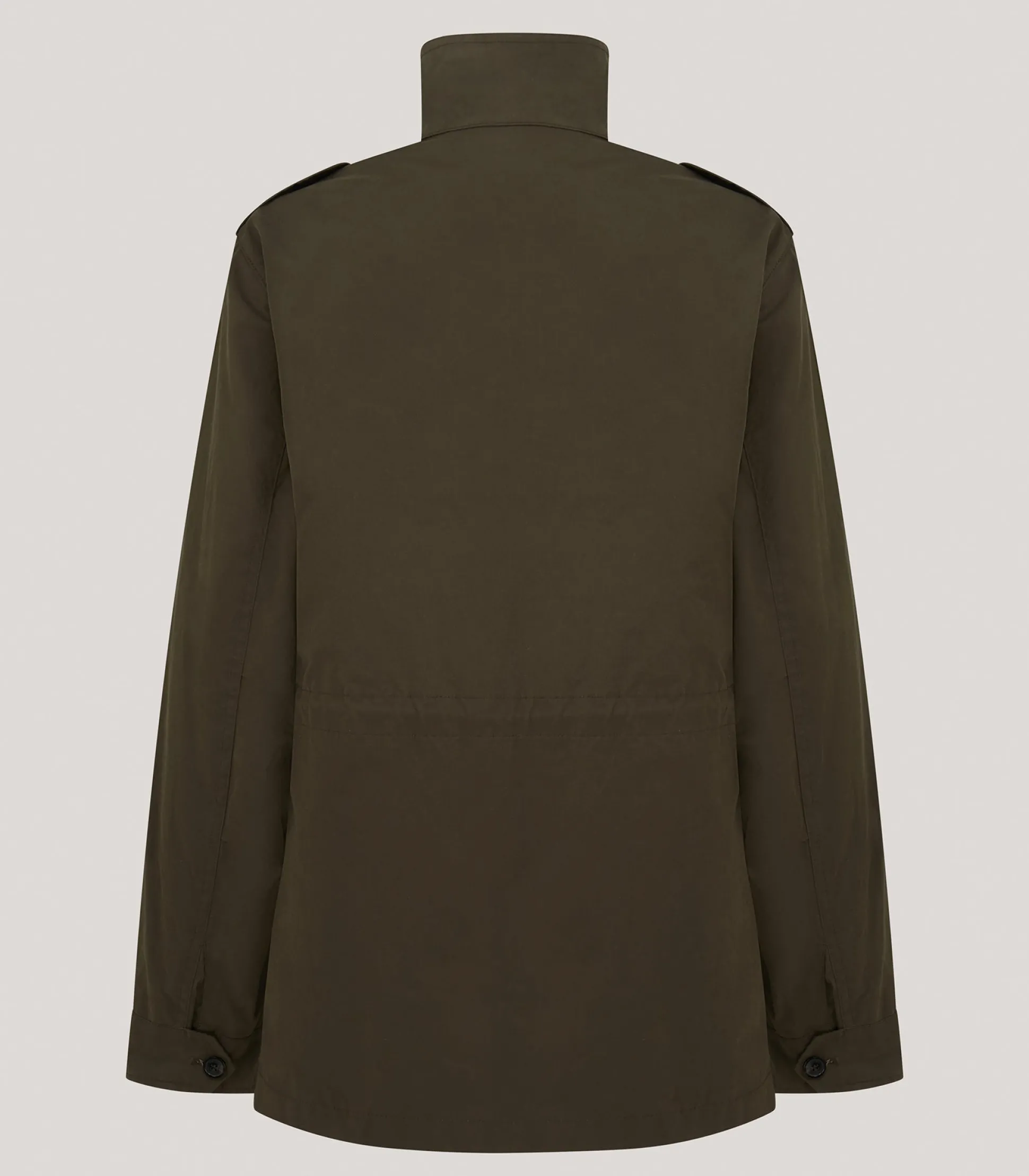 This classic Purdey field jacket comes in a deep green and lightweight dry wax cotton to ensure it is water-repellent. The drawstring at the waist can adjust the shape. It has ample room to layer underneath.