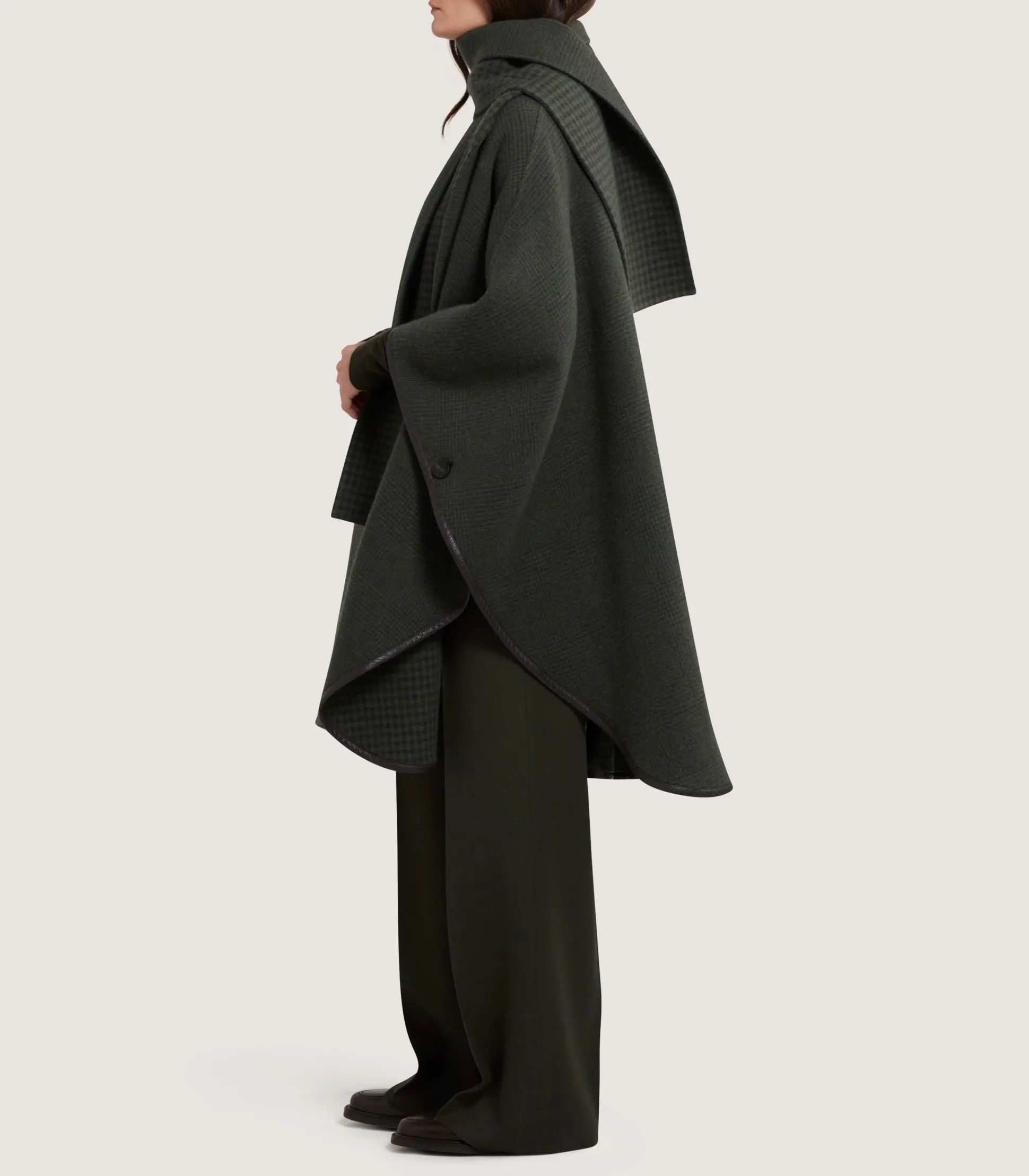 Enjoy the best of two styles with the Women’s Scarf Cape. The Glen check exterior is complemented with a contrasting Shepherd check interior. It’s made from a wool cashmere blend and is finished at the hem with a leather binding.