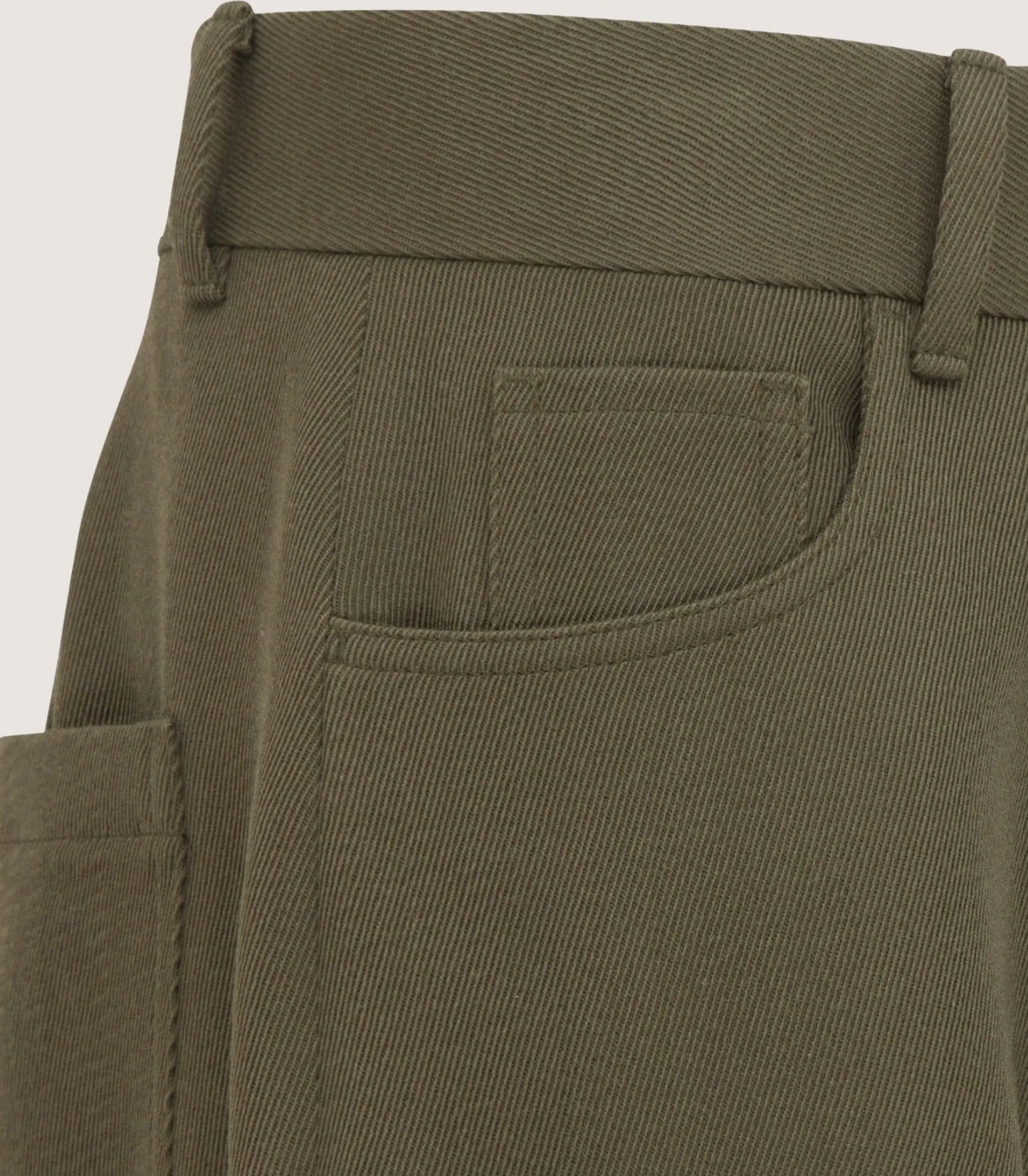 The Seymour trouser is a unique addition to the autumn/winter collection. Made from a lightweight wool twill fabric in a handsome dark olive, it has a wide-leg design with five pockets. The belt loops allow you to style as you desire.