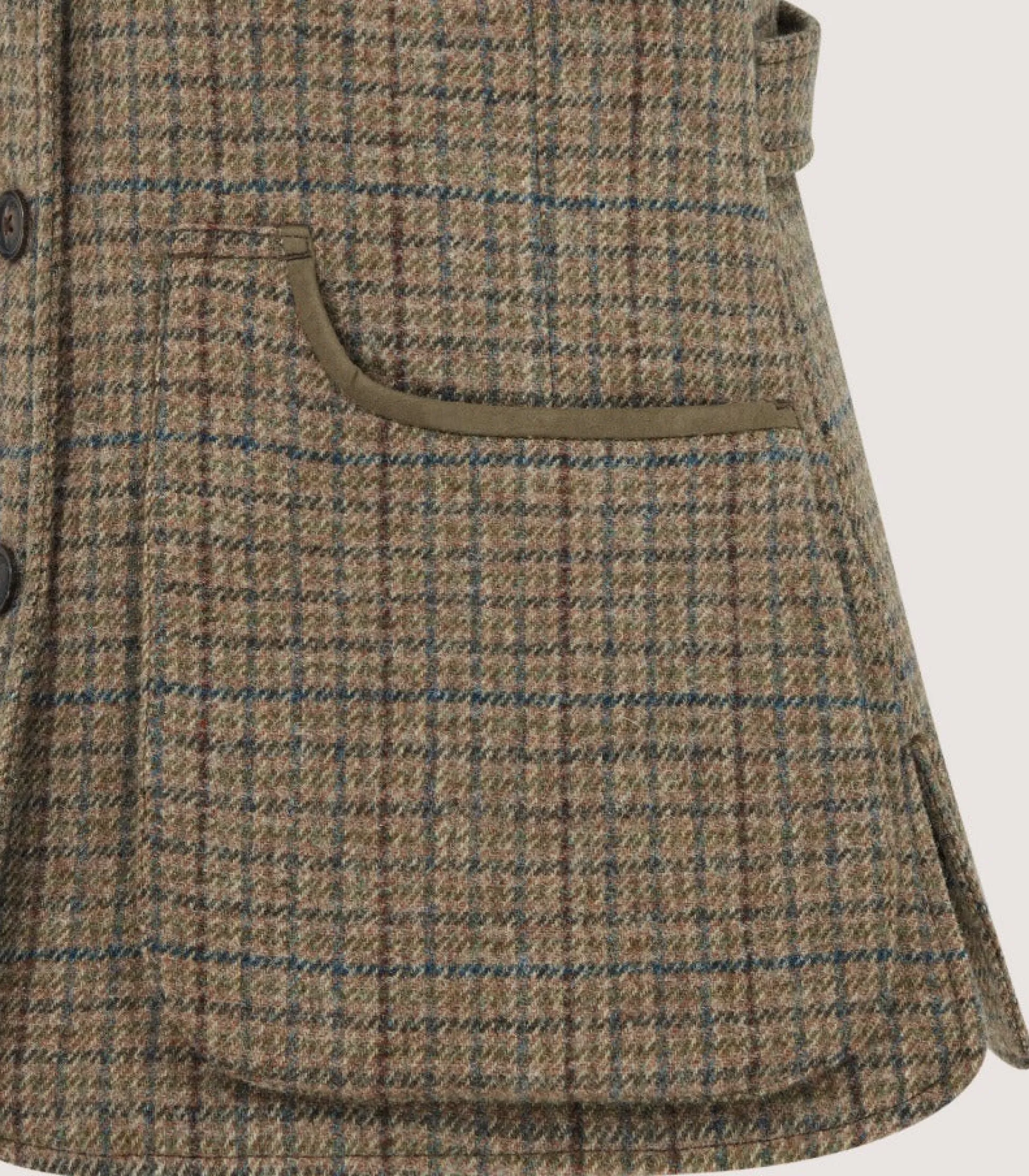 This sporting vest has been crafted out of Scottish tweed wool with a traditional v-neck shape. The patches on the shoulders are anti-slip and offer increased protection. Made in Portugal, it’s finished with faux suede trim and adjustable tabs on the back that gather the shape.