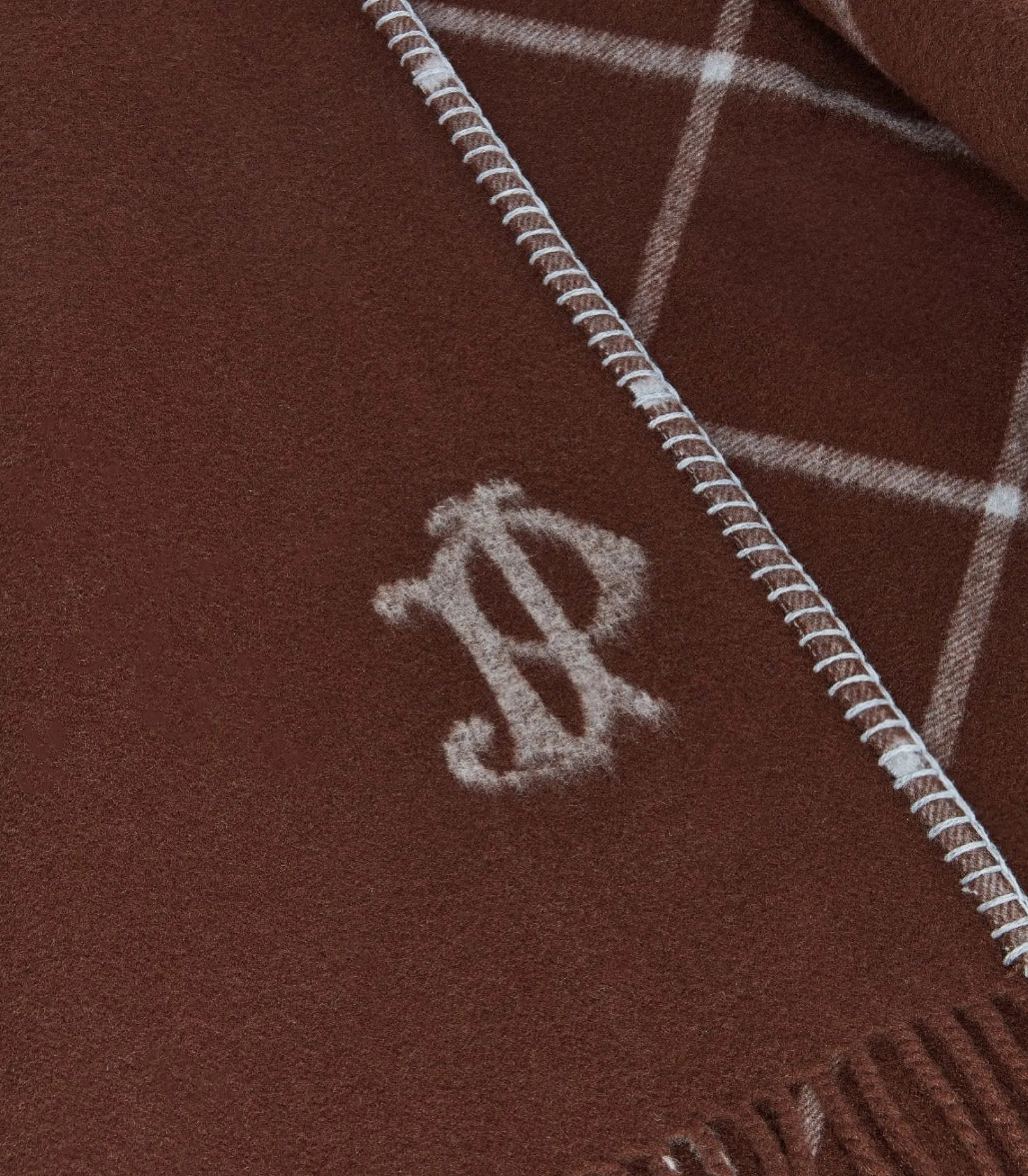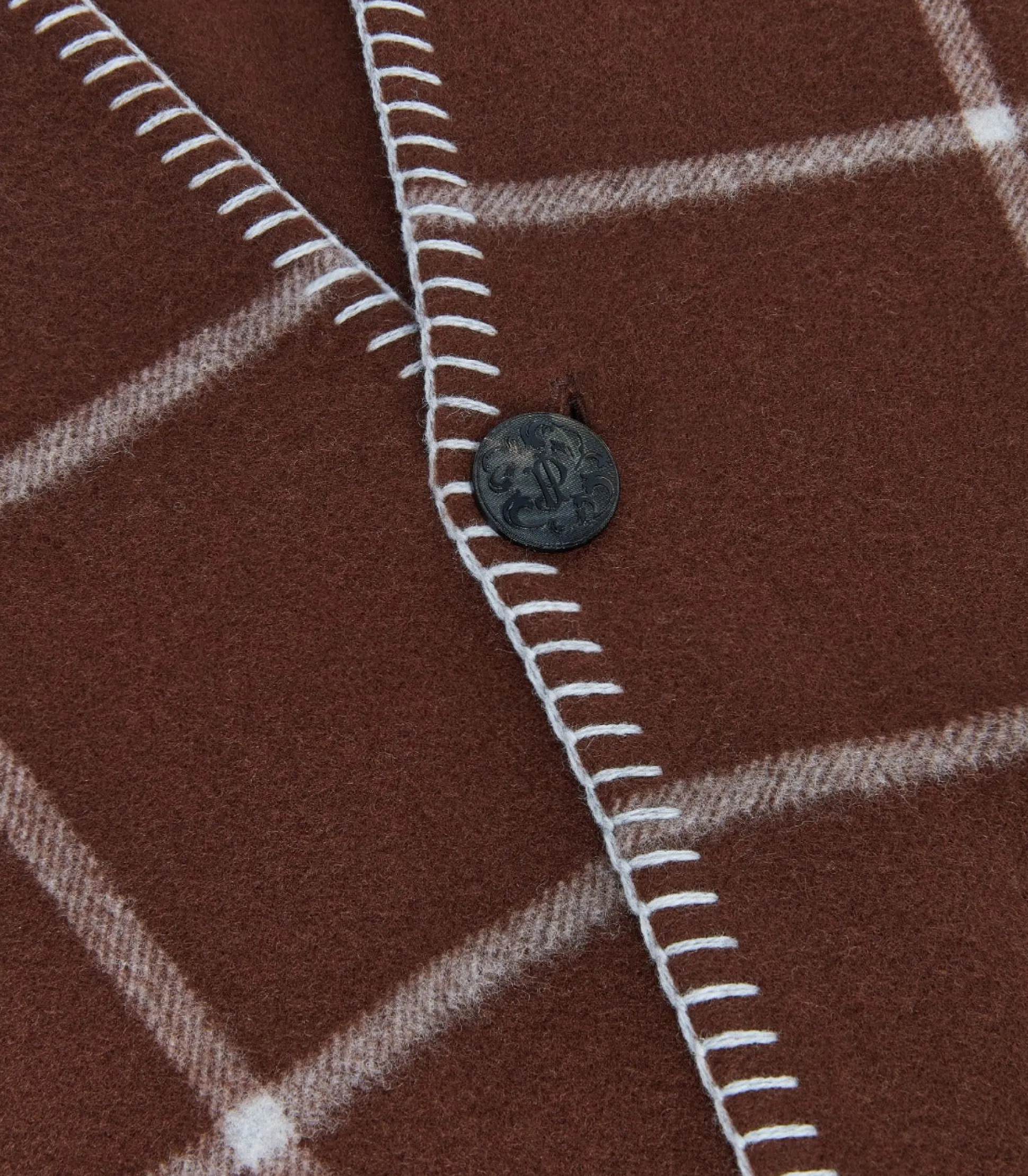 The Welbeck poncho is made from a double face splittable wool cashmere and virgin wool. It’s patterned on one side with a tonal windowpane check and plain on the reverse, finished with a fridge on the hem. It can be worn either way depending on your preference. One size.